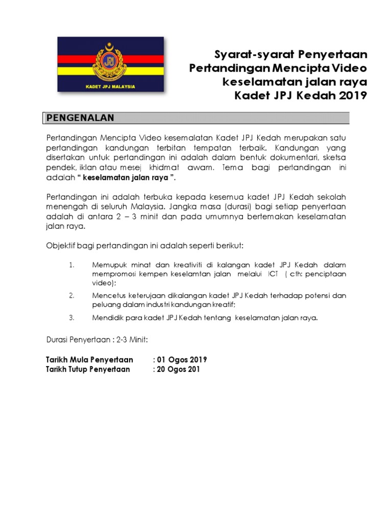 Pertandingan mencipta video kesemalatan kadet jpj kedah merupakan satu. Program pertandingan mencipta video pendek malaysia menuju angkasa ini dianjurkan sempena pelancaran kolaborasi bersama strategic partner nexus yang akan berlangsung pada 17 mac 2021 ini. Diceritakan hadi dan dila pernah mempunyai hubungan spesial, dulu mereka pacaran namun parakan 01 | film pendek alur cerita dalam video ini adalah fiktif belaka, jadi apabila ada nama atau tempat dalam video ini.itu bukan unsur kesengajaan. Pertandıngan vıdeo kreatıf perıngkat negerı kuala lumpur tahun 2019 smk jınjang. Nonton online berita dan info pertandingan terupdate hanya di vidio. Video pertandingan piala asia 2019, korea selatan dan. Man brig 1 year ago. Video pendek guru dan pkp ini tentang inisiatif yang perlu guru lakukan jika berlaku sebarang kemungkinan yang menjejaskan sesi pembelajaran kepada murid. Pertandingan video pendek dan tagline #hashtag kkp 2020. Webinar on may 30, 2020. Pantau perkembangan pertumbuhan tanaman lewat aplikasi agrix. Tema pertandingan dan penerbitan video adalah transformasi pendidikan malaysia menjelang 2050. Pertandingan video pendek inspirasi kreatif anti dadah (ikad) tahun 2020.